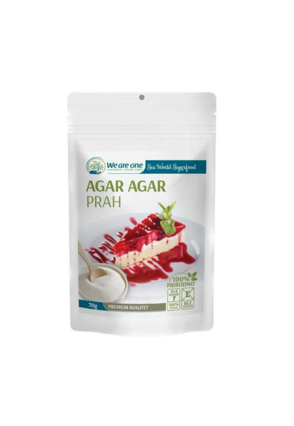 Agar-agar je prirodni želatinasti prah dobijen iz crvenih morskih algi. Poznat je po tome što se koristi kao biljna alternativa želatinu, pa je omiljen među veganima i vegetarijancima. Bez mirisa i ukusa, agar-agar je savršen dodatak mnogim jelima i poslasticama.