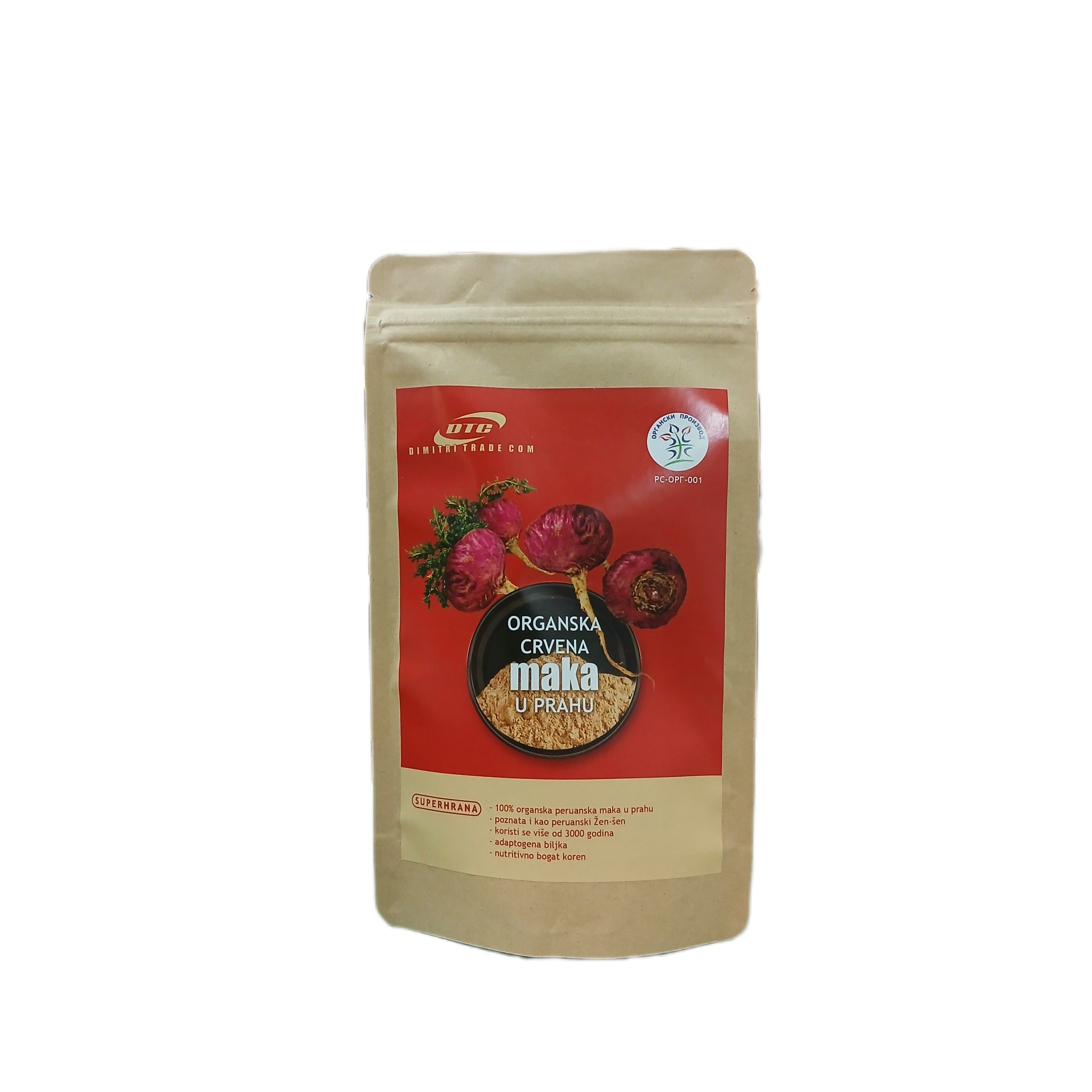 DTC Organska crvena maka je biljka poreklom iz Perua, poznata po mnogim zdravstvenim prednostima. Crvena maka je bogata nutrijentima, uključujući vitamine, minerale i antioksidanse. Često je korišćena u tradicionalnoj medicini za poboljšanje vitalnosti i energije.